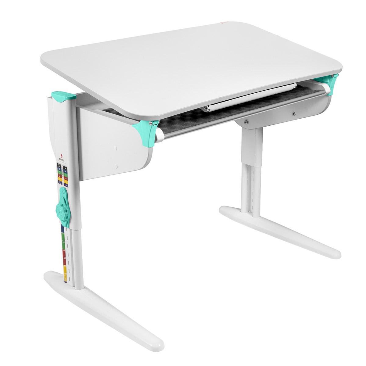 Парта Дэми СУТ.46 с лотком белый/аквамарин/белый каркас