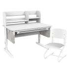 Комплект Дэми СУТ.62 PRO парта + стул + надстройка + выдвижной ящик белый/метрополитан грей/белый со стулом СУТ-01-01 фанера белый/белый