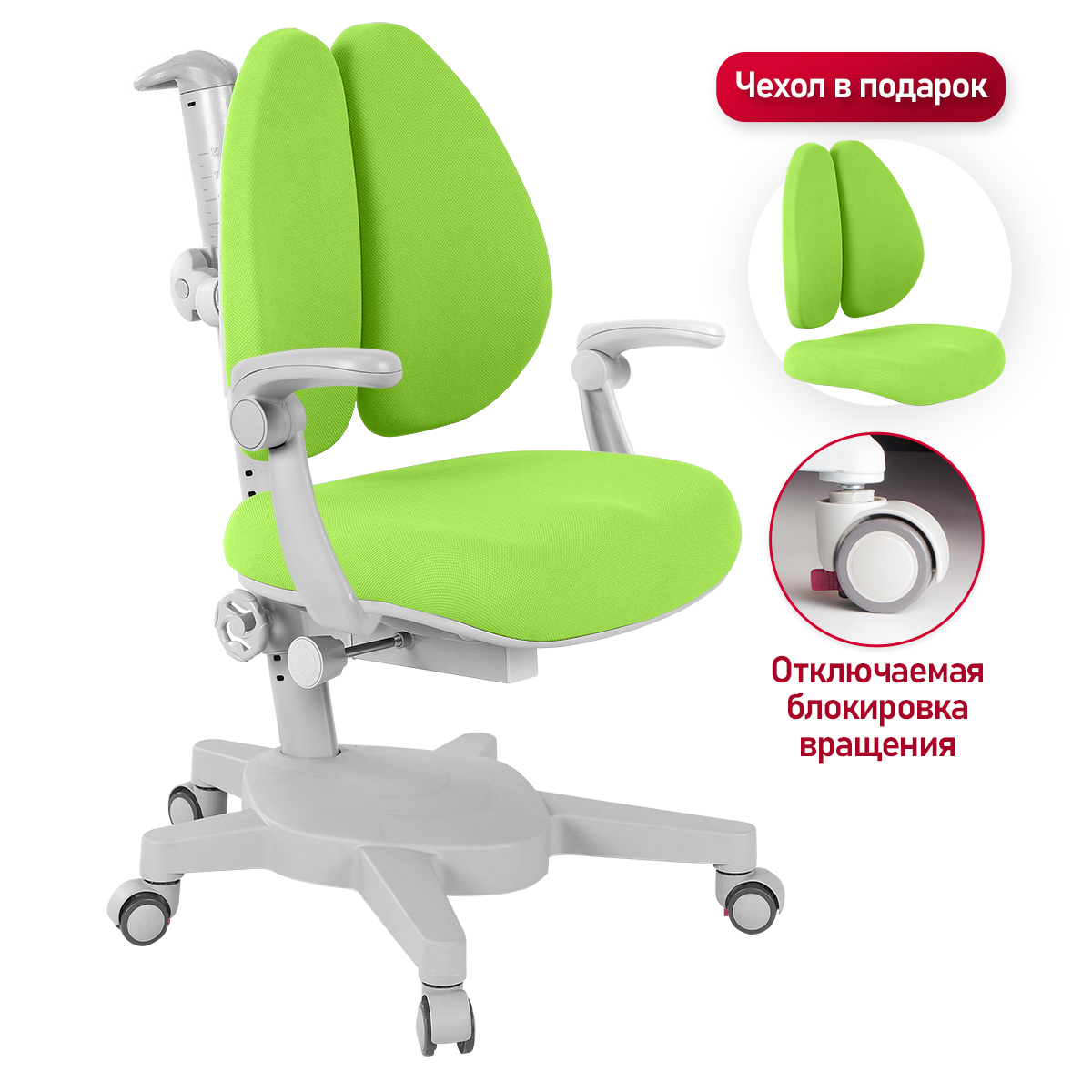Колесики блокируются автоматически под действием силы тяжести (достаточно сесть в кресло). Это помогает улучшить концентрацию и сосредотачивает на занятиях. Также кресло выполнено из экологически чистых материалов, которые не выделяют вредных веществ.